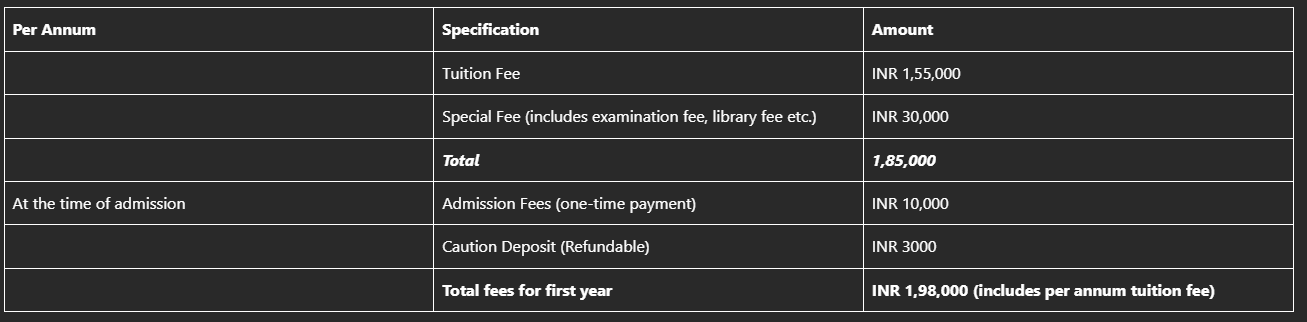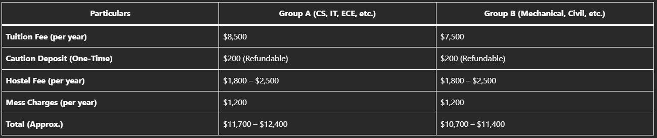 Note: Fees for NRI students are higher than for Indian students and vary based on currency exchange rates.