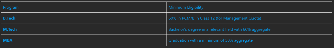 • NRI/Management Quota: Reserved for students who are willing to pay a higher fee.
