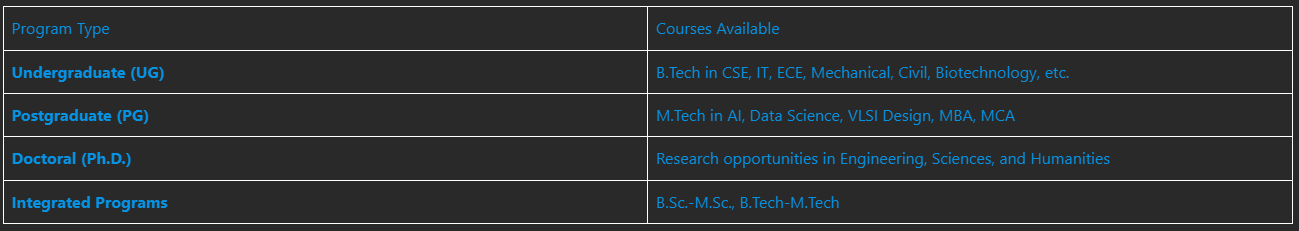 VIT offers a wide range of undergraduate, postgraduate, and doctoral programs. Below is a table of the popular courses: