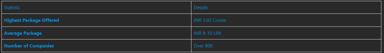 VIT is renowned for its placement record, with top companies like Microsoft, Google, Amazon, and Deloitte recruiting students annually. In the 2023 placement season: